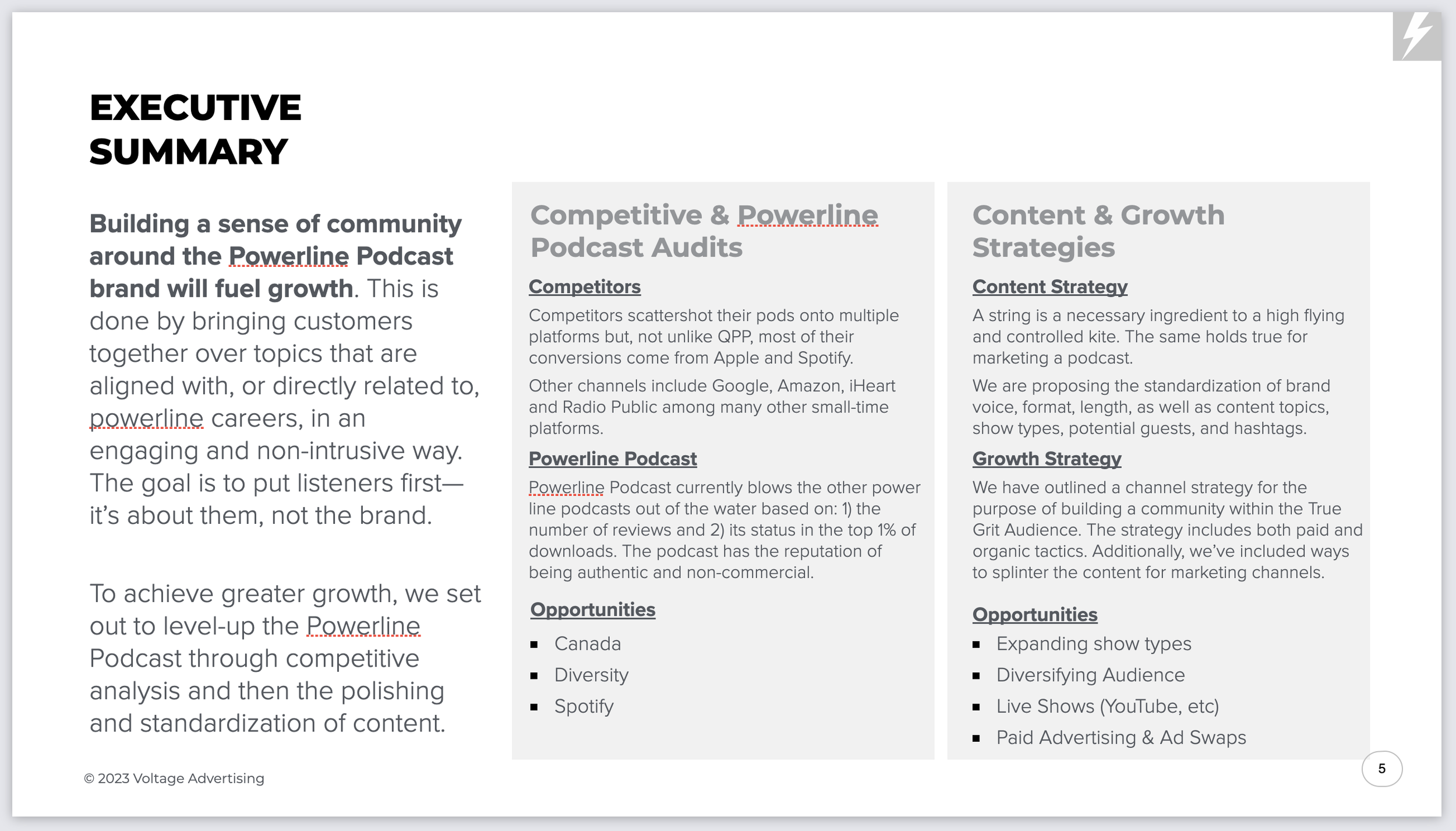 We also helped to research and develop a podcast strategy for their recently acquired podcast “The Powerline Podcast.”